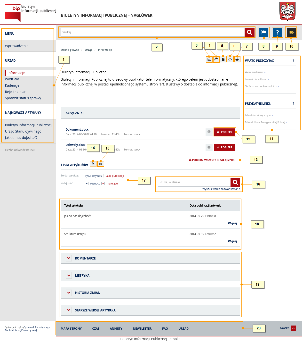 Uwaga: Strona główna portalu rozumiana jest tu, jako strona rozprowadzająca, na której użytkownik odnajdzie linki rozprowadzające, czyli listę aktywnych adresów podmiotów i prowadzonych portali BIP.